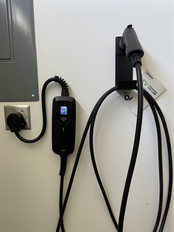 Complementary Level 2 electric vehicle car charger in garage!