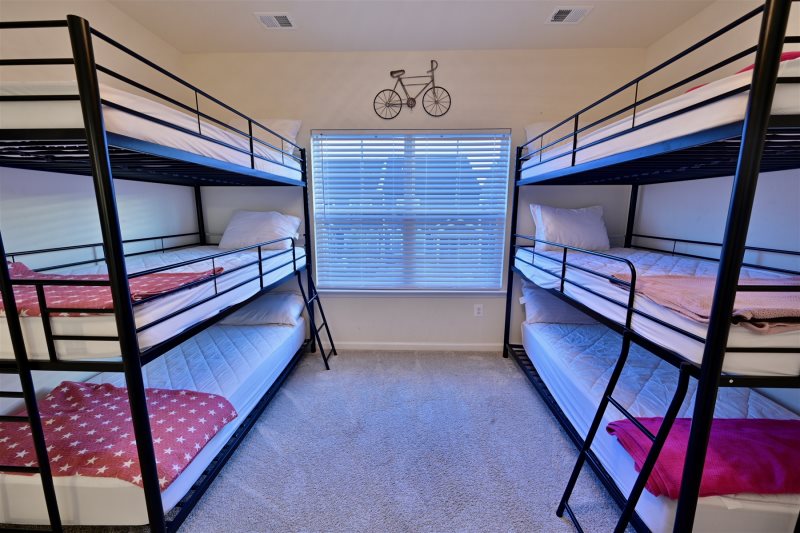 Bed: Bunk Beds (3 Twin beds) and 1 King bed (sleeps up to 5 people, 3 Adults Max)