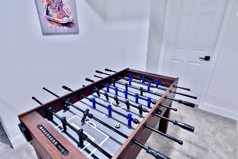 * Huge Entertainment Room Downstairs w Wet Bar, Huge TV, Pop a Shot Basketball Game, Foosball Game, Ping Pong Table and Excercise Equipment