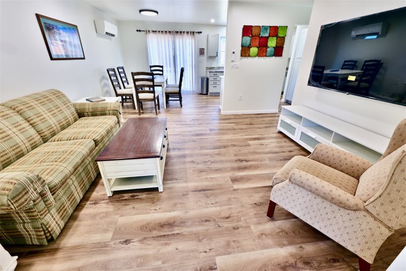 The bright, modern interior includes new flooring, custom trim, LED lighting, ceiling fans, and large new streaming HDTVs throughout. Enjoy year-round comfort with multiple new mini-split HVAC systems, new washer and dryer.