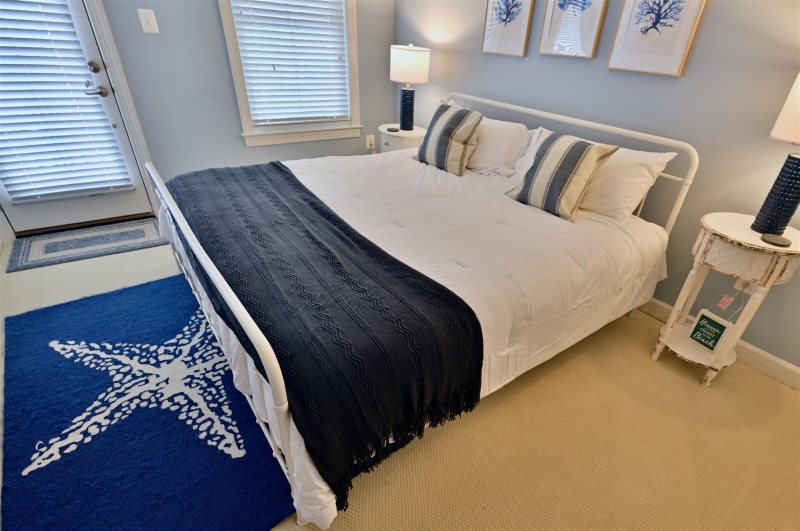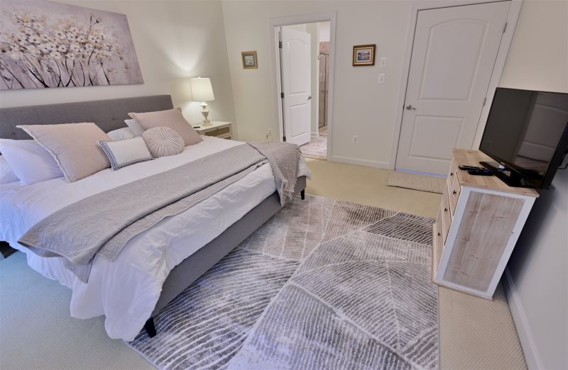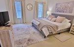 Main-Level Primary Suite: King bed, en-suite bath (walk-in shower, double sinks, separate water closet)